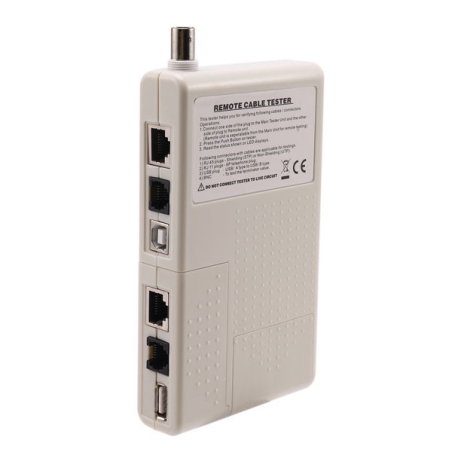 • سایر مشخصات              تست کننده کابل LAN باز / کوتاه (STP / UTP ، LocalTalk ، PhoneNet ، نازک کواکسیال) و ماژول های غیر فعال منفعل که برای آزمایش کابلهای نصب شده طراحی شده است قابلیت تست مقدار خاتمه برای اتصالات BNC جمع و جور ، سبک و قابل حمل میباشد. دکمه عملکرد واحد و مراحل عملیاتی و کاربردی آسان برای کاربر دارد. اتصال دهنده: RJ-۴۵ / BNC / RJ-۱۱ / USB هر کدام در واحد های اصلی RJ-۴۵ / BNC / RJ-۱۱ / USB هر کدام در ماژول از راه دور قابل تفکیک قابلیت ها: x آزمایش سیم کشی باز / کوتاه x سیمهای متصل به نمایش x و بدون اتصال و بدون نشانه ترمینال x و اتصال نادرست و نمایش اتصال غیر موازی x تشخیص مقدار پایانه اترنت ۱۰BASE-و ۱۰BASE-۵ در یک زمان ابعاد: ۱۴۲ x ۸۵ x ۲۵ میلی متر