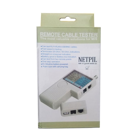 با تستر شبکه همه کاره نت پیل مدل pil-17 میتوان اتصال سوکت های USB RJ45 RJ11 و کواکسیال را تست کرد. این تستر جز کامل ترین تسترهای شبکه می باشد که اغلب شبکه کارهای حرفه ای از این دستگاه استفاده می کنند.تست کننده کابل نت پیل مدل pil-17 یک واحد اندازه کف با چهار نوع اتصالات: RJ45 ، RJ11 ، USB و BNC است ، تستر همچنین کارکرد آسان را ارائه می دهد. کاربر با آزمایش ساده با فشار دادن یک دکمه، شروع به آزمایش می کند و ظرف چند ثانیه از سالم یا معیوب بودن کابل مطلع میشود دکمه. LED های چندگانه از سلامت کابل وضعیت داده و به طور خودکار خاموش می شوند .