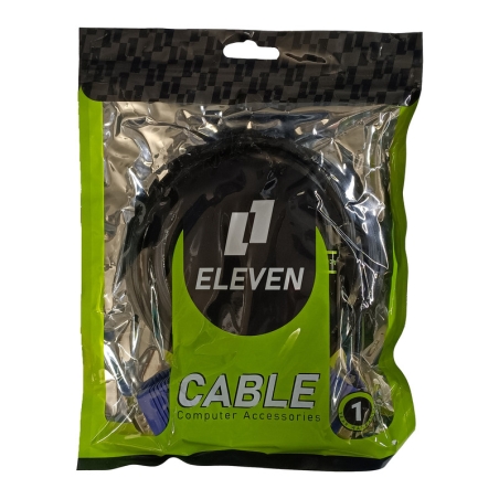 کابل VGA الون مدل EL-150 از مجموعه محصولات باکیفیت الون (ELEVEN) است از نوع سر سوکت پرس شده و با رشته هایی از جنس آلومینوم می باشد که در متراژ 1.5 متر نیز تصویر را انتقال می دهد. این محصول در واقع یک کابل رابط VGA برای انتقال تصویر است. در هر دو سمت این کابل یک کانکتور 15 پین VGA قرار گرفته شده است.پورت VGA یک درگاه استاندارد برای اتصال به دستگاههایی با قابلیت پخش فایلهای ویدئویی مانند مانیتور و پروژکتور است. برای اتصال این درگاه به مانیتور یا پروژکتور باید از کابل هایی با کانکتورهای VGA بهره گرفته شود. عبارت VGA مخفف عبارت Video Graphics Array است. درگاه های VGA دارای 15 پین (DB-15) بهصورت سه ردیفی هستند؛ البته در استاندارد Mini-VGA تعداد پینها 14 عدد و بهصورت دو ردیفی است. وظیفهی این درگاه ها، انتقال داده های تصویری به صورت آنالوگ است.