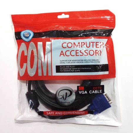 این مدل کابل VGA برای افرادی ساخته شده که به دنبال یک کابل VGA با کیفیت که طول زیادی هم داشته باشد، هستند. این کابل 5 متر طول دارد و در هر سمت از آن یک کانکتور VGA وجود دارد. رشتههای سیمی داخل کابل با استفاده از روکشی با جنس PVC پوشانده شدهاند. این روکش مقاوم است و باعث میشود رشتههای سیمی در برابر قطع شدن براثر کشیدن مقاومت داشته باشند. این کانکتورها روکشی فلزی دارند که برای جلوگیری از نوسانات مغناطیسی مناسب خواهند بود.بسیاری از دستگاهها از جمله مانیتورها، لپتاپها و ویدئو پروژکتورها برای اتصال به رایانه و انتقال تصویر از پورت VGA بهره میبرند. در هر دو سمت این کابل یک کانکتور 15 پین VGA قرار گرفته شده است. طول 5 متری این کابل باعث میشود که نیازی به نزدیک کردن تجهیزاتی که قرار است به هم متصل شوند، نباشد. این کابل در برابر بسیاری از صدمات از جمله گره خوردگی یا پاره شدن مقاوم باشد.